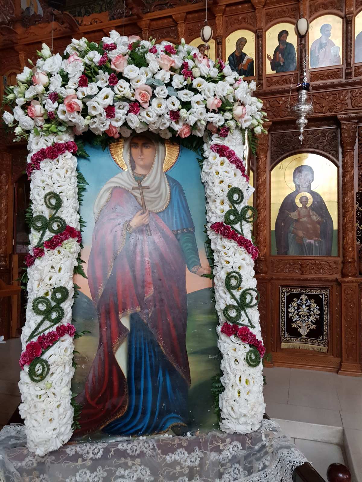 Πλήθος κόσμου προσέρχεται στο μοναστήρι για να προσκυνήσουν το Άγιο λείψανο και την Θαυματουργή Εικόνα της Αγίας.
