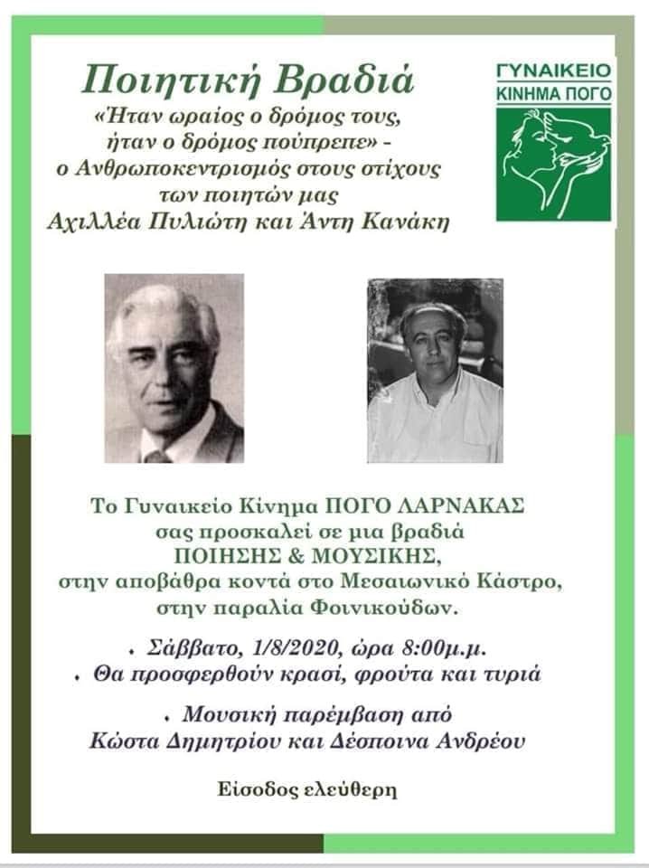 Η ΠΟΓΟ Λάρνακας διοργανώνει βραδιά ποίησης αυτό το Σάββατο 1Η Αυγούστου η ώρα 8:00 μ.μ στην αποβάθρα πάρα το Μεσαιωνικό Κάστρο.