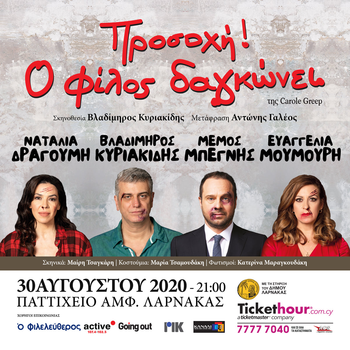 City of Larnaca > Blog > Going Out > Θέατρο > Έρχεται στη Λάρνακα η κωμωδία «Προσοχή! Ο φίλος δαγκώνει» της Carole Greep