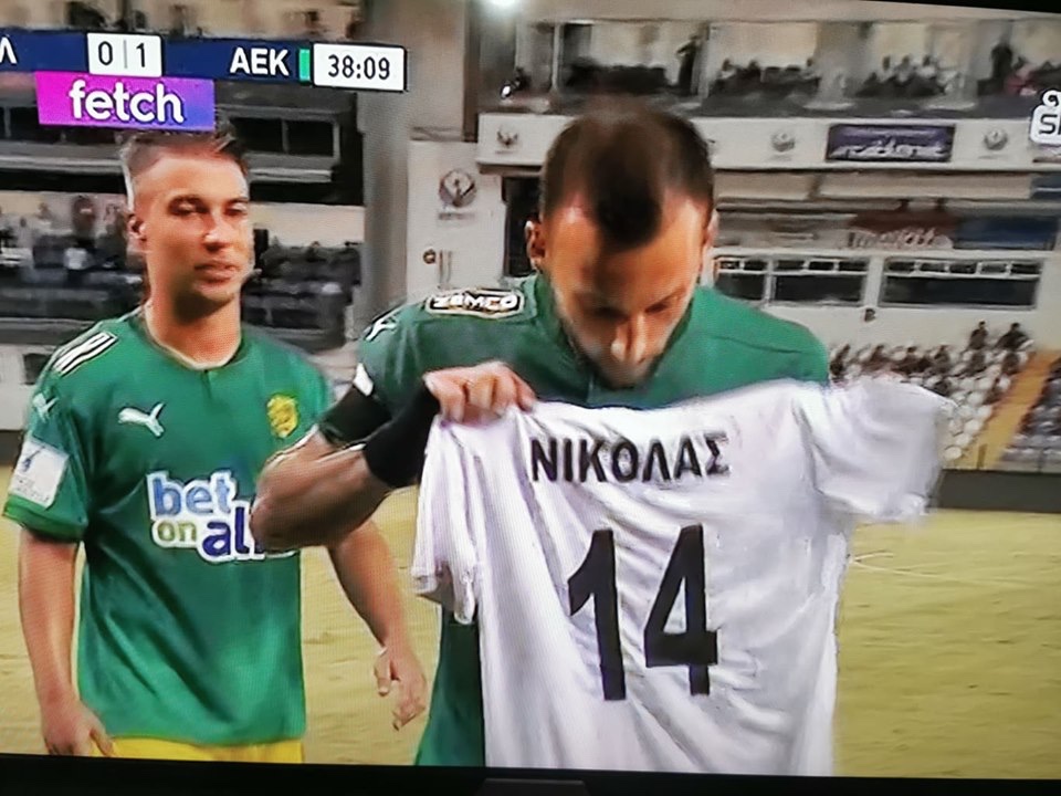 Ο σκόρερ της ΑΕΚ αφιέρωσε το γκολ του στον μικρό Νικόλα Θεοδότου που έφυγε στα 14 του χρόνια.