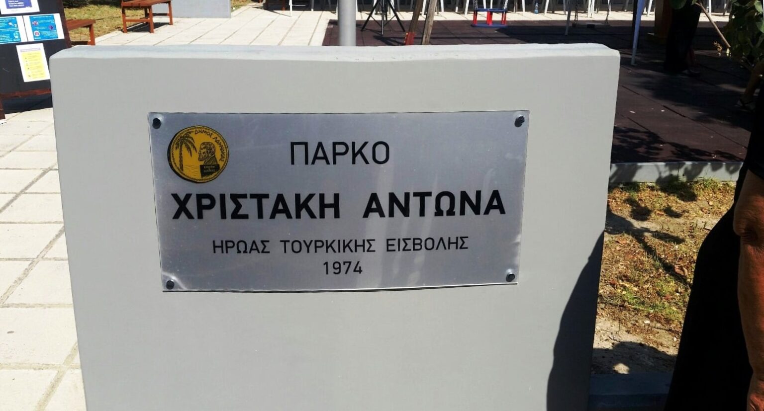 Πραγματοποιήθηκαν την Κυριακή, τα αποκαλυπτήρια της ονομασίας πάρκου στην Λεωφόρο 1ης Απριλίου σε ΧΡΙΣΤΑΚΗ ΒΑΣΟΥ ΑΝΤΩΝΑ, ανευρεθέντα αγνοουμένου που έπεσε μαχόμενος κατά την Τουρκική Εισβολή του 1974.