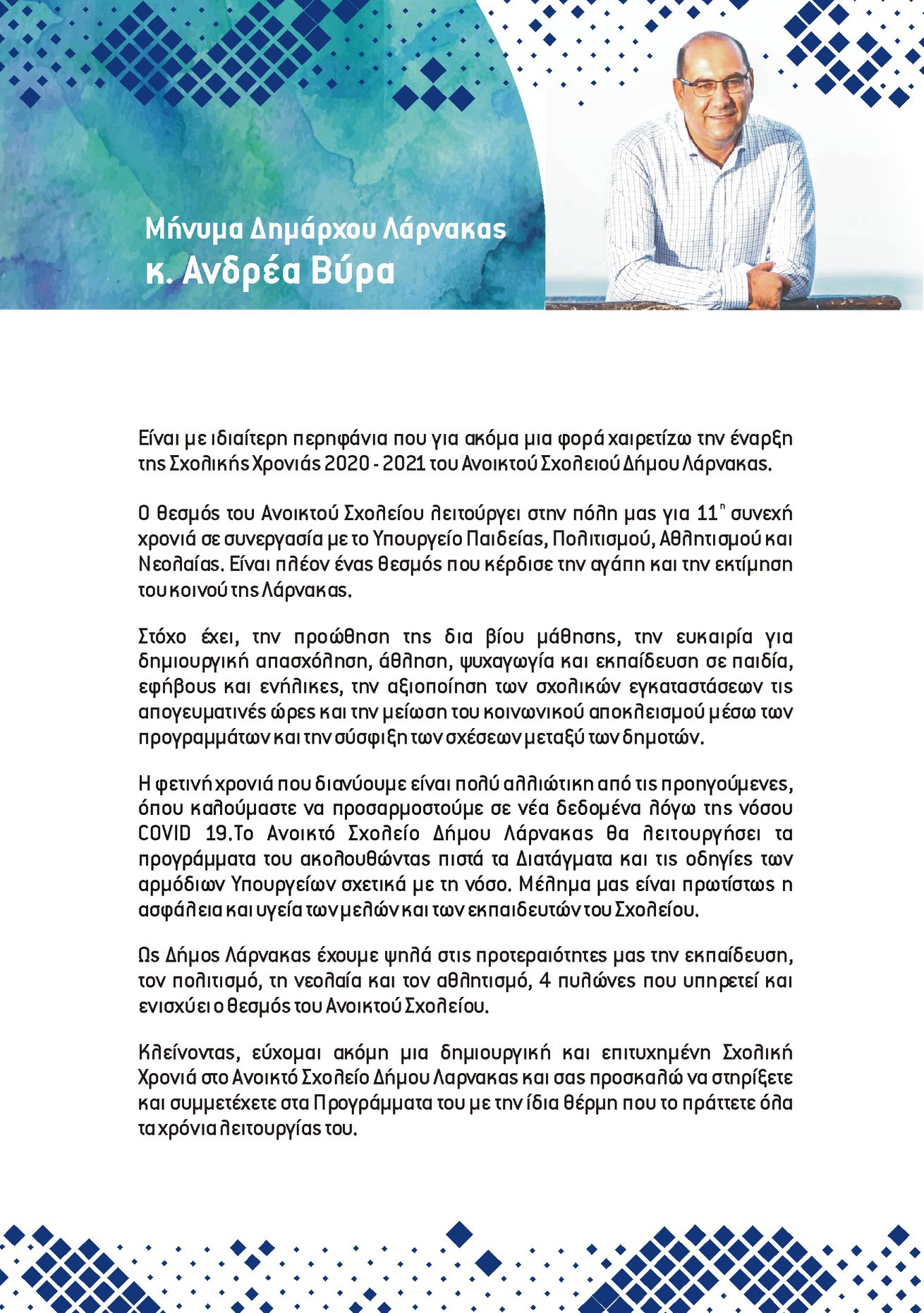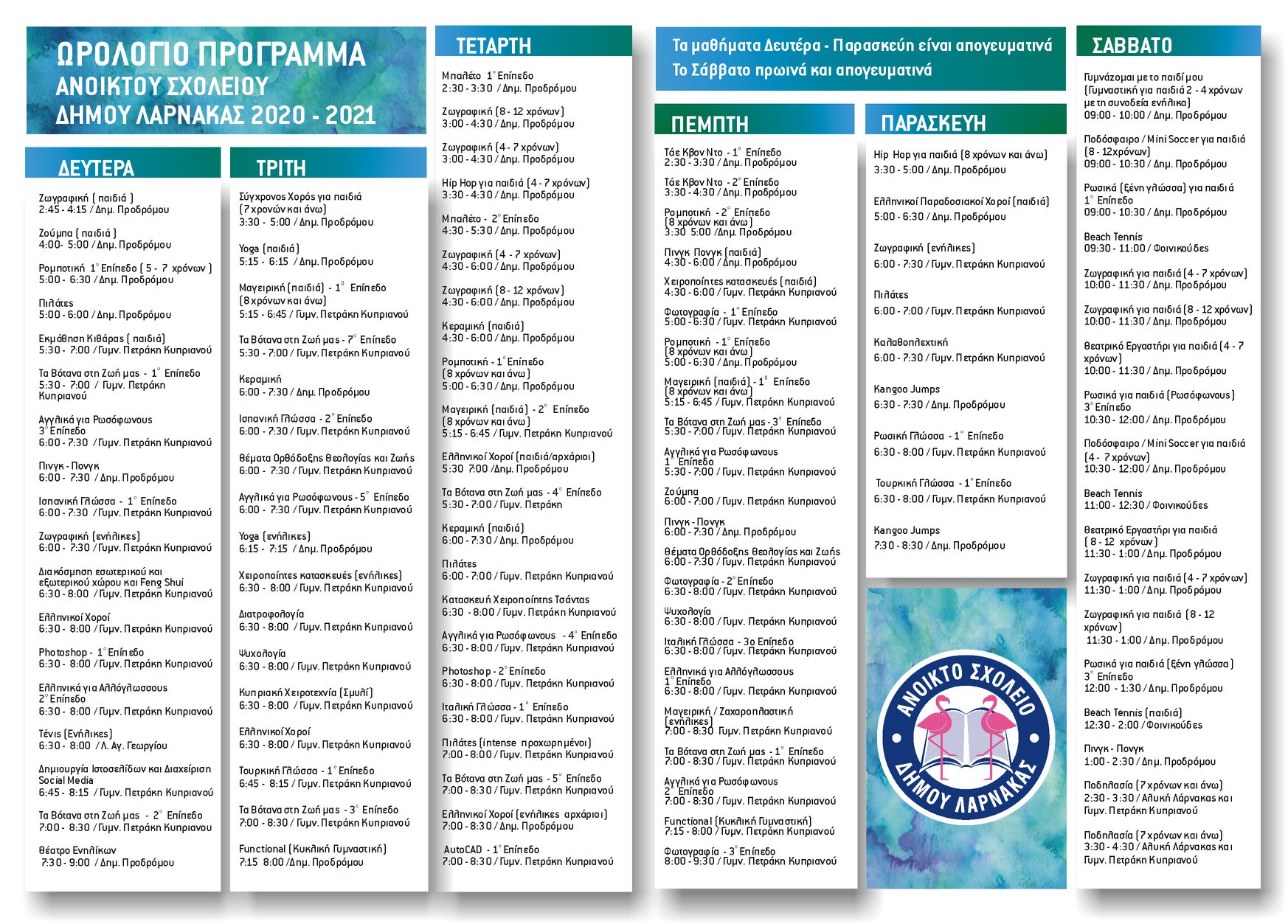 Πρόγραμμα και έναρξη εγγραφών Ανοικτού Σχολείου Δήμου Λάρνακας για τη Σχολική Χρονιά 2020 – 2021