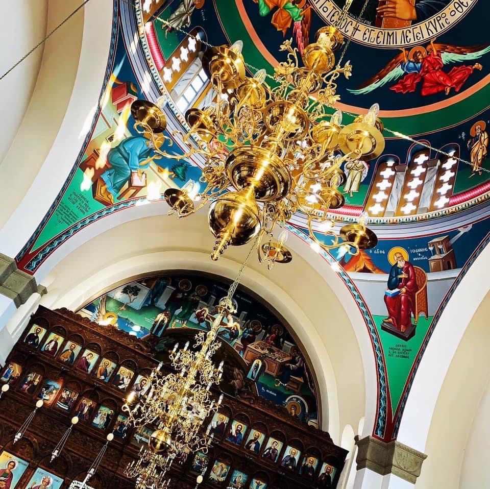 με το πανέμορφο ξύλινο σκαλιστό εικονοστάσι. Ο ναός κτίστηκε το 1950 αλλά η εικόνα της Παναγιάς είναι πολύ παλαιότερη. Αφού προσκυνήσαμε ξεκινήσαμε τη βόλτα μας στο χωριό. Δίπλα από τη μεγάλη εκκλησία το μικρό εξωκκλήσι του Αγίου Γεωργίου κτίσμα του 18ου αιώνα που όμως λειτουργούσε μέχρι το 1950 ως παρθεναγωγείο. Η κυρία Αντρούλα υπεύθυνη των εκκλησιών μας πληροφόρησε για τον θρύλο που λέγεται ότι κάθε πρωί έβρισκαν τα θρανία των μαθητριών του παρθεναγωγείου αναποδογυρισμένα μέσα στο εκκλησάκι και το ερμήνευαν πως ο Άγιος δεν ήθελε να γίνει σχολείο. Έτσι το μετακόμισαν αλλού.