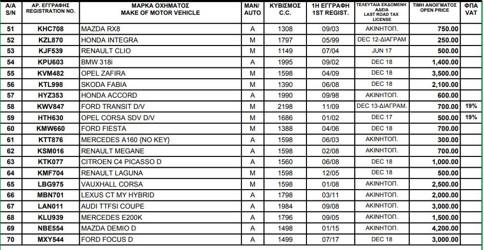 Αξίζει να αναφερθεί πως, οι τιμές των αυτοκινήτων κυμαίνονται από €150 έως και €18.000, με κάποια εξ αυτών να είναι ακινητοποιημένα ή να φέρουν μεγάλες ζημιές.