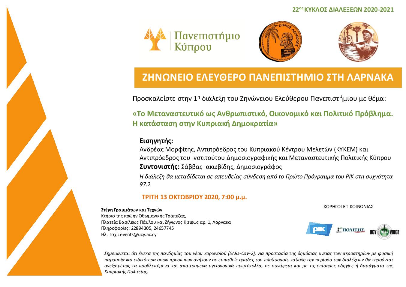 Τελετή έναρξης 22ου Χρόνου Διαλέξεων και Διάλεξη με θέμα: «Μεταναστευτικό ως ανθρωπιστικό, οικονομικό και πολιτικό πρόβλημα. Η κατάσταση στην Κυπριακή Δημοκρατία»