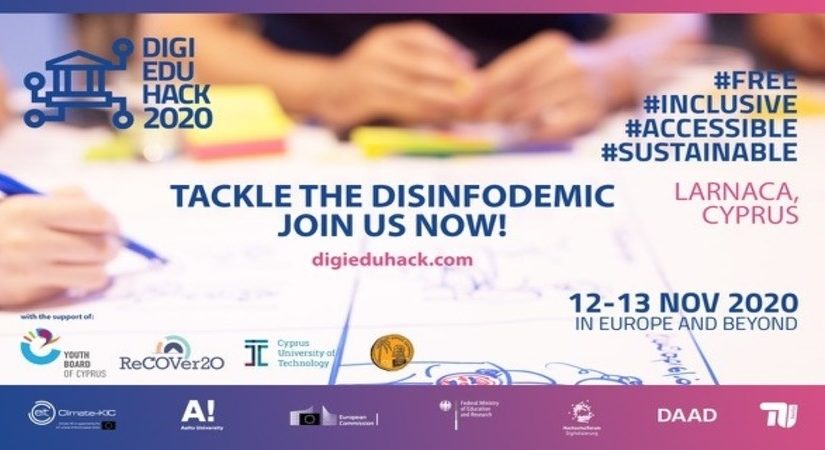 Το hackathon είναι ανοικτό για άτομα ή ομάδες και διοργανώνεται στα πλαίσια του Ευρωπαϊκού Digital Education Hackathon 2020 στις 12 και 13 Νοεμβρίου στη Λάρνακα με στόχο οι συμμετέχοντες να προτείνουν λύσεις για την πρόκληση της επιδημίας της παραπληροφόρησης κατά την διάρκεια και μετά το CoVid-19.