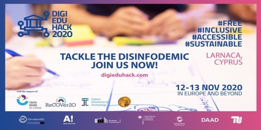Το hackathon είναι ανοικτό για άτομα ή ομάδες και διοργανώνεται στα πλαίσια του Ευρωπαϊκού Digital Education Hackathon 2020 στις 12 και 13 Νοεμβρίου στη Λάρνακα με στόχο οι συμμετέχοντες να προτείνουν λύσεις για την πρόκληση της επιδημίας της παραπληροφόρησης κατά την διάρκεια και μετά το CoVid-19.