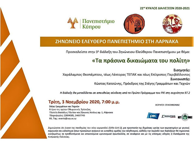 City of Larnaca > Blog > Going Out > Στέγη Γραμμάτων: 3τη Διάλεξη “Τα πράσινα δικαιώματα του πολίτη”