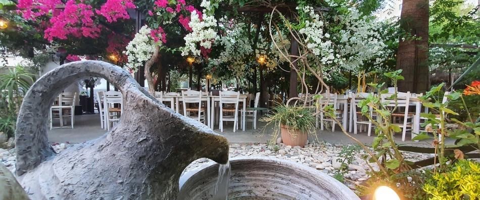 Η μοναδική ατμόσφαιρα, οι μαγικές βουκαμβίλιες, τα σιντριβάνια και η διακριτική μουσική ελληνικού ρεπερτορίου, σε κάνουν να ξεχνάς πως βρίσκεσαι στο κέντρο μιας πόλης…