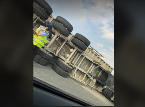Φωτογραφίες του ανταποκριτή του ΣΙΓΜΑ στην Αμμόχωστο δείχνουν την αναποδογυρισμένη νταλίκα.