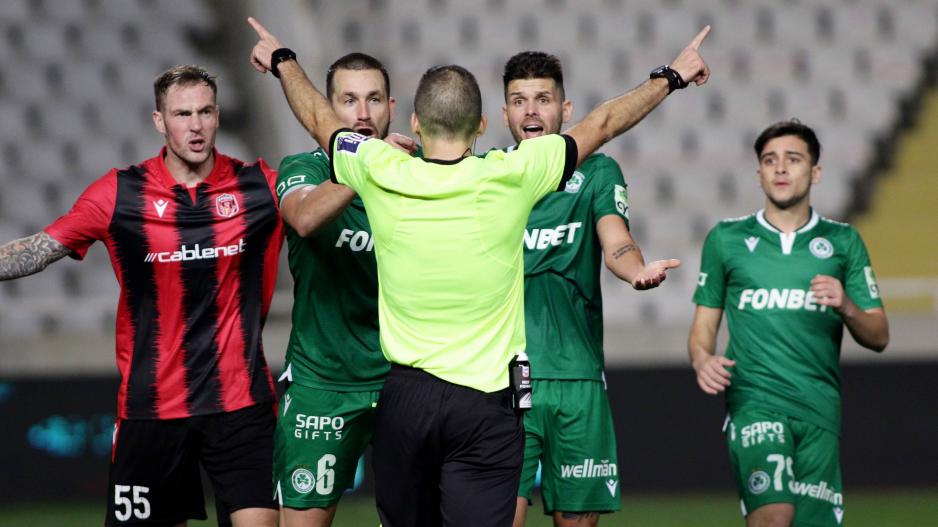 Στην τελευταία φάση του αγώνα, οι «πράσινοι» διαμαρτυρήθηκαν εκ νέου για πέναλτι, με τον Κακουλλή να πιάνει την κεφαλιά και τη μπάλα να βρίσκει ξανά στο απλωμένο χέρι του Ντίας.