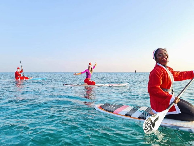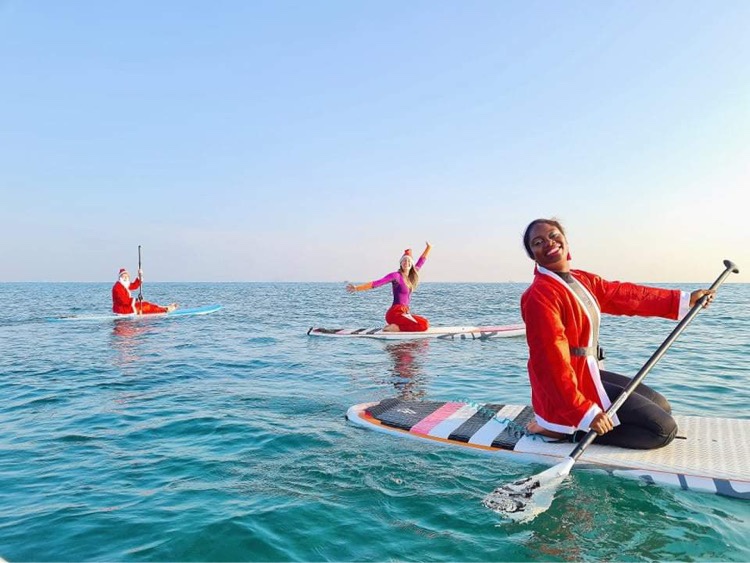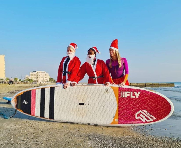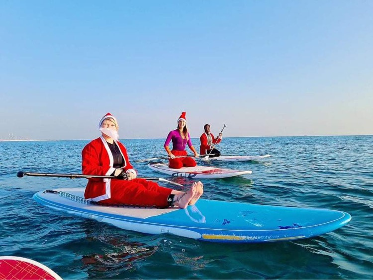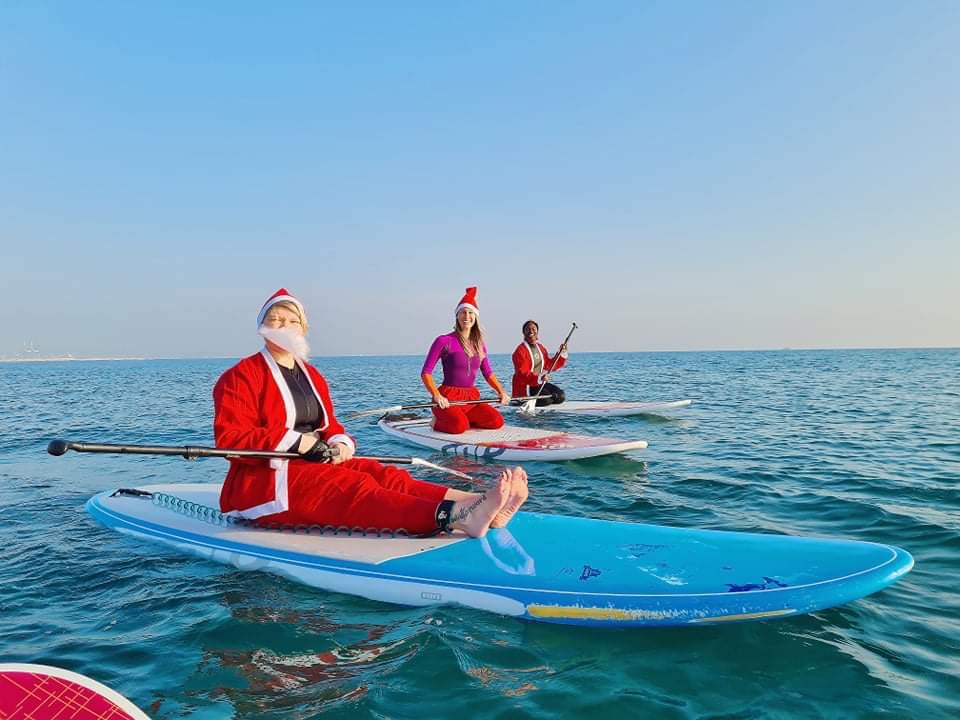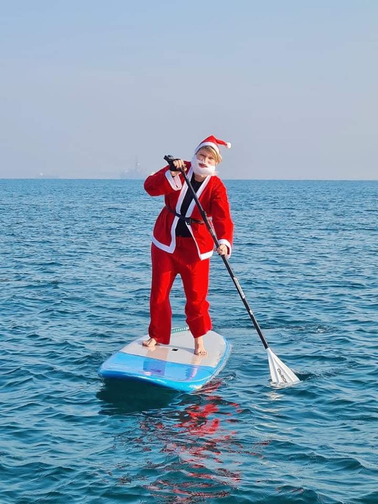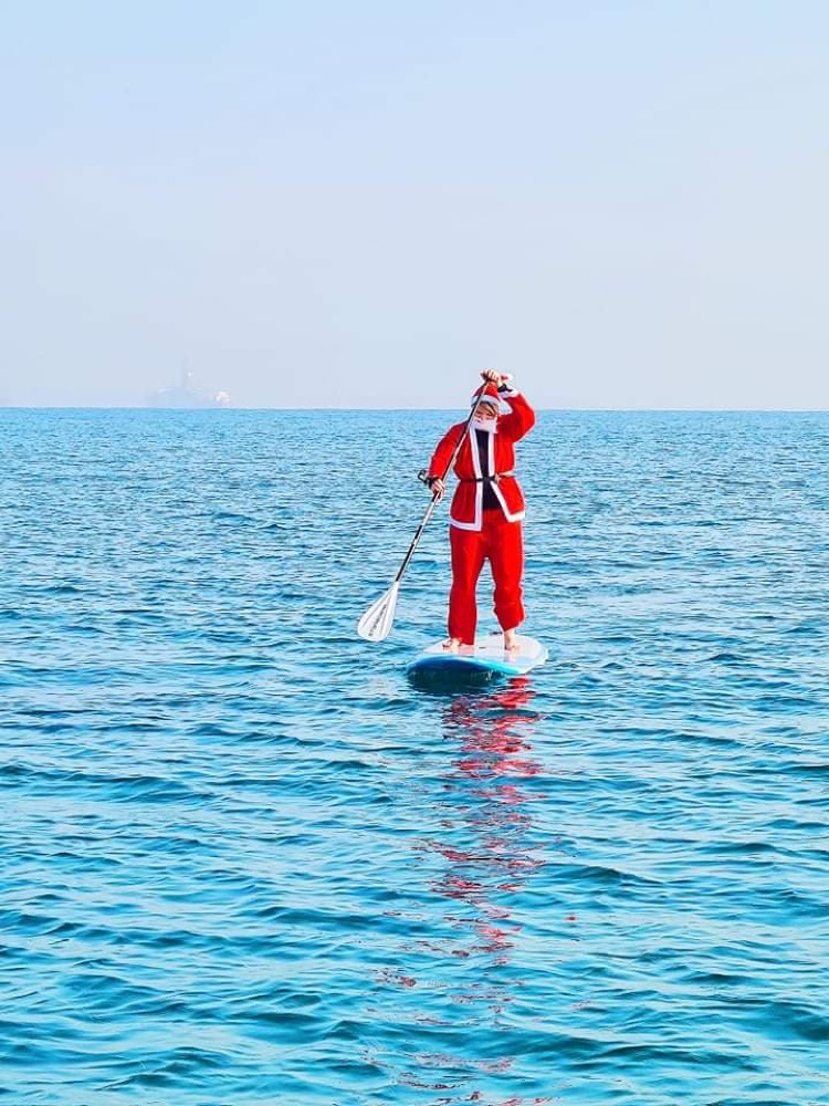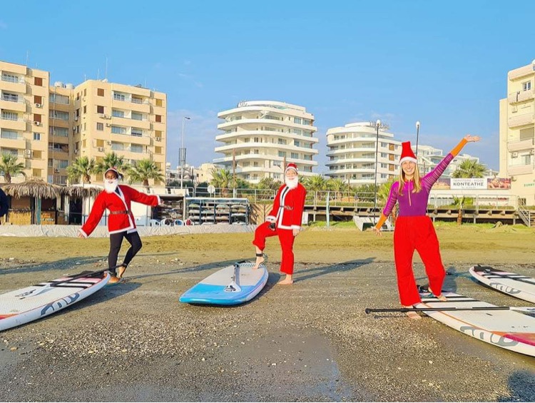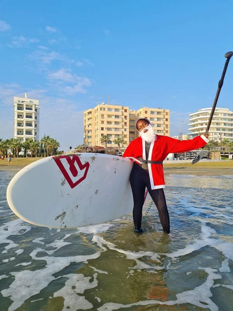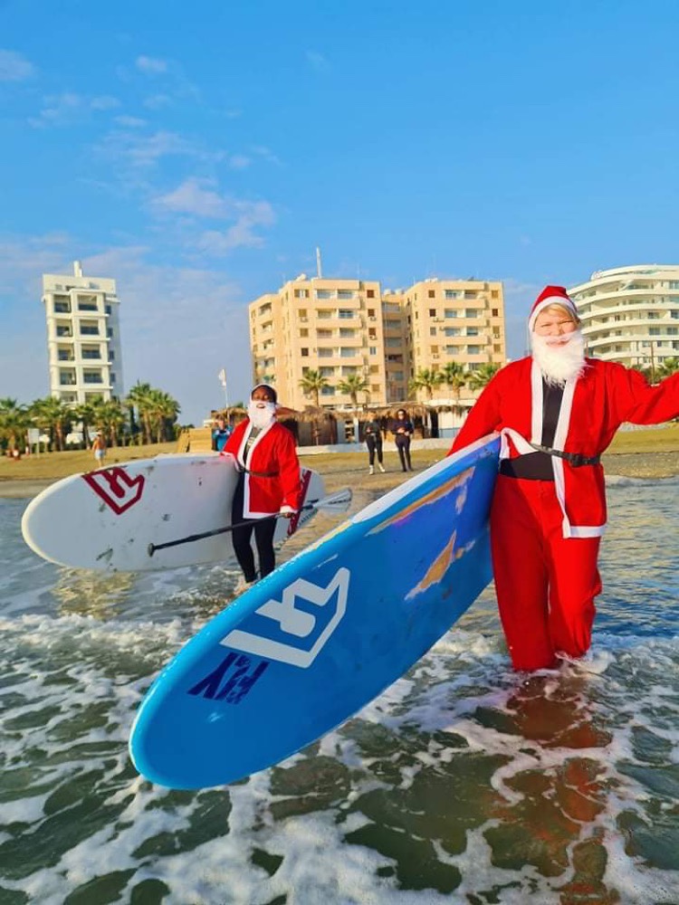 Με αυτή τη διάθεση , συμπολίτες μας ανέβηκαν στις σανίδες τους στην παραλία Μακένζυ, ντύθηκαν Άη Βασίληδες και έδωσαν το δικό τους κόκκινο χρώμα στη θάλασσα της πόλης μας.