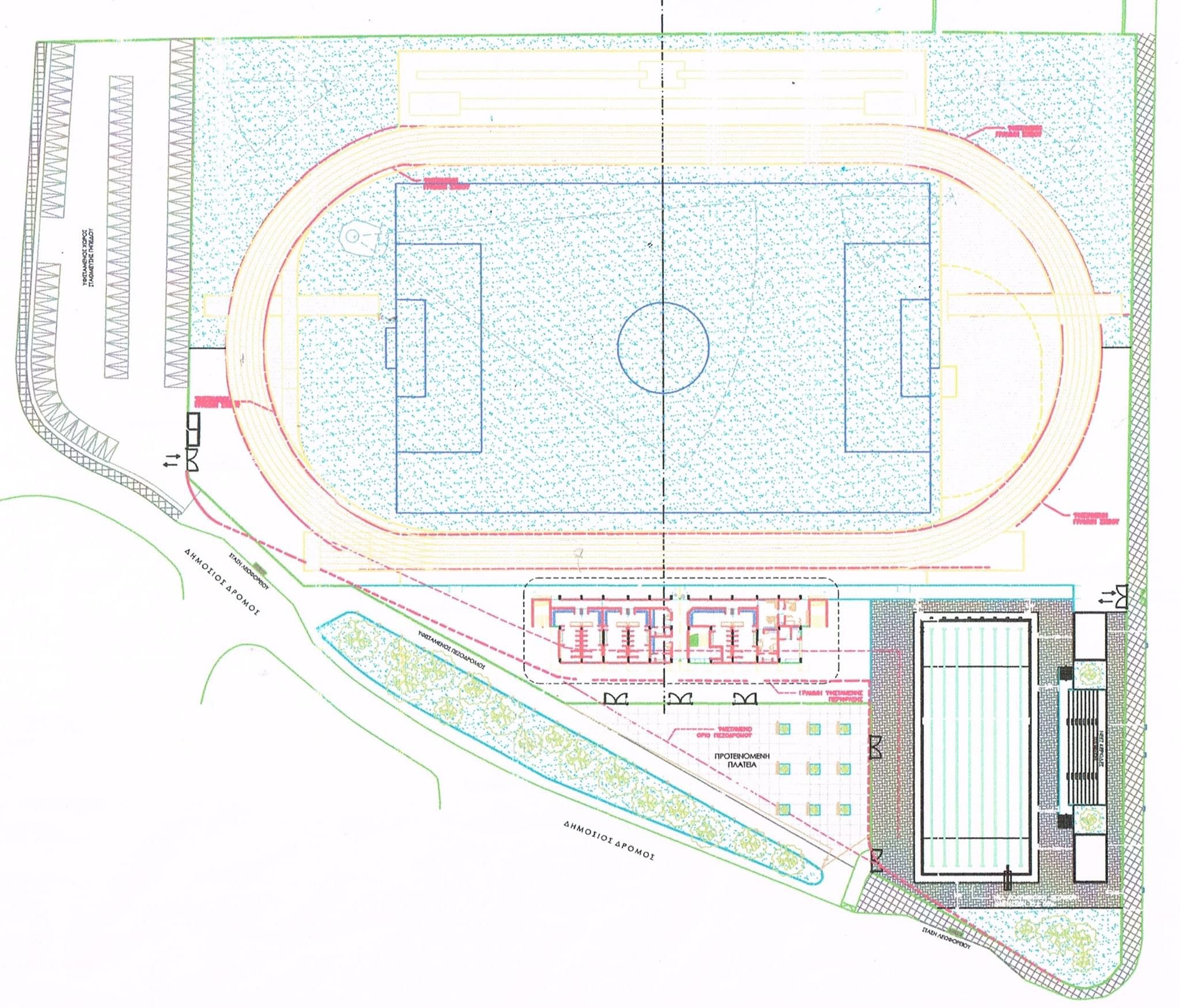 Μεταξύ άλλων οι εργασίες αφορούν δημιουργία στίβου αθλοπαιδιών, κερκίδες με αποδητήρια και αποχωρητήρια, μεταλλική εξωτερική περίφραξη, εξωραισμό ανοικτού χώρου εξωτερικά & εσωτερικά και πρόνοια κολυμβητηρίου.