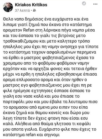 City of Larnaca > Blog > Τοπικά Νέα > Επιχειρήσεις > Κατάστημα Refan: Συμπεριφορά ανθρωπιάς από τον ιδιοκτήτη απέναντι σε ΑμεΑ που έσπασε καταλάθος τη βιτρίνα