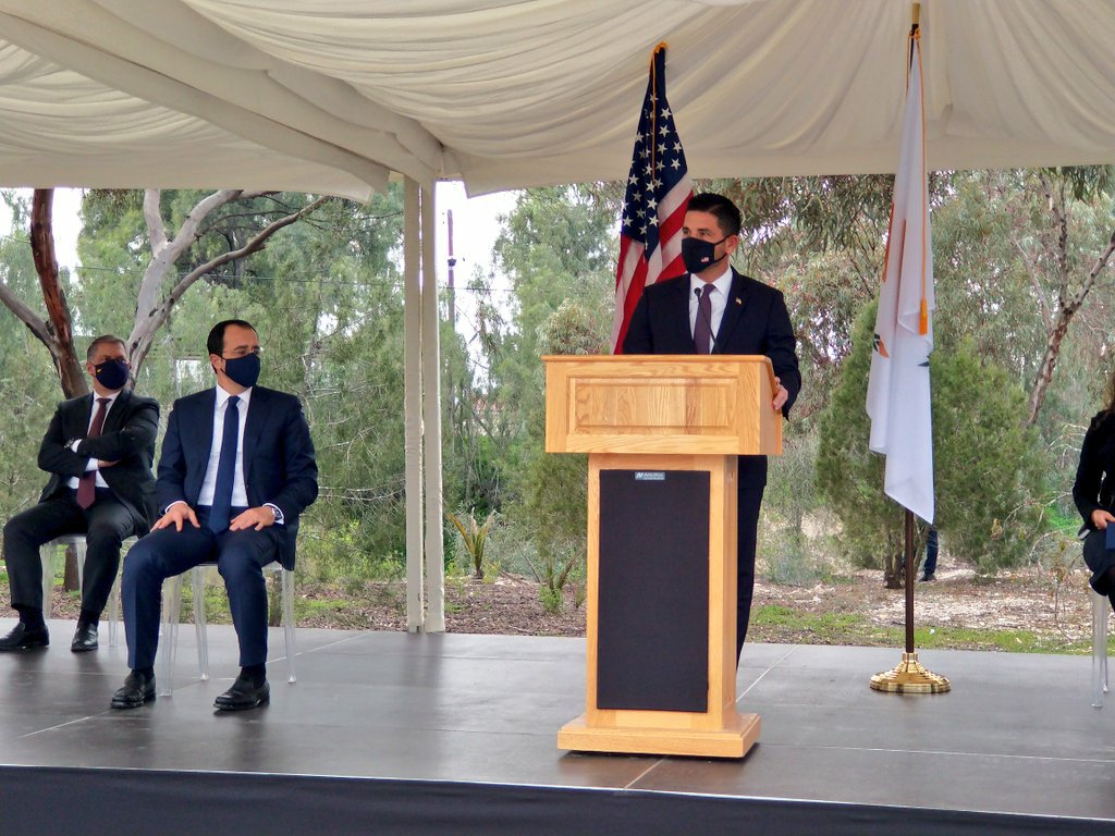 Σε ομιλία του κατά τη διάρκεια της τελετής, ο Νίκος Χριστοδουλίδης ανέφερε ότι η σημερινή μέρα αναδεικνύει κατά τρόπο εμβληματικό το δρόμο για τη διμερή συνεργασία ανάμεσα στην Κύπρο και τις ΗΠΑ, η οποία όπως ανέφερε εμβαθύνεται τα τελευταία χρόνια.