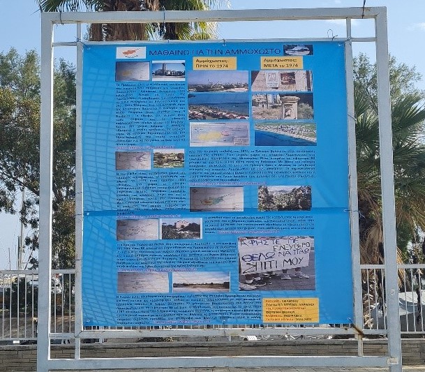 Οι μαθητές της Α’ και Β’ τάξης  Γυμνασίου στα πλαίσια του μαθήματος της Γεωγραφίας, διευρεύνησαν, χαρτογράφησαν και πήραν συνεντεύξεις απο Αμμοχωστιανούς πρόσφυγες για διάφορα χωριά της αγαπημένης μας πόλης. Συγκεκριμένα, το πανό συμπεριλαμβάνει μαθητικές εργασίες δημιουργημένες με αγάπη για χωριά οπως το Πραστειό, Καλοψίδα, Τρίκωμο και Ακανθού.