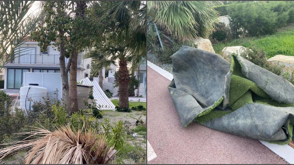 Μια βδομάδα μετά το πέρασμα του ανεμοστρόβιλου στο παραλιακό μέτωπο των Περβολιών και η περιοχή εξακολουθεί να μοιάζει με σκουπιδότοπο.