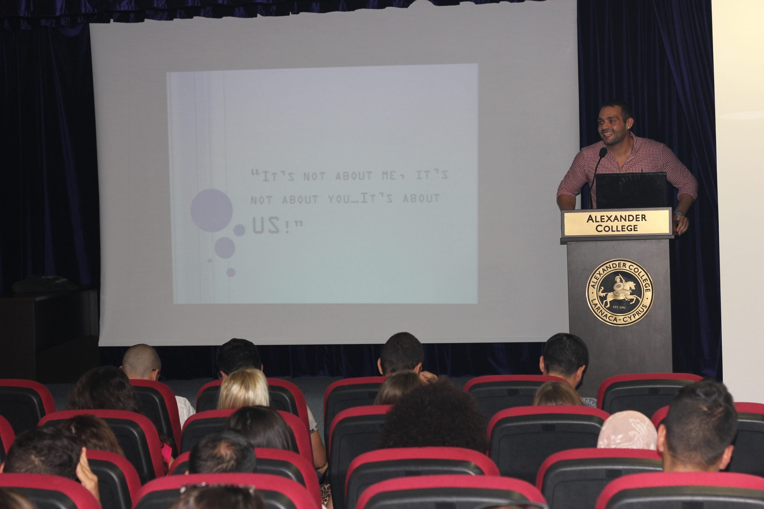 «Πάνε κιόλας πέντε χρόνια από την ίδρυση της φοιτητικής ένωσης Alexander College. Ξεκίνησε από δύο άτομα, τον Γιώργο Παντελίδη και Αντρέα Προδρόμου. Όπως κάθε αρχή και δύσκολη, και σ’ αυτήν την περίπτωση βρήκαν πολλές δυσκολίες. Ξεκίνησαν από το μηδέν, με φιλοδοξίες και πολλές προσπάθειες. Έτσι, υπάρχει σήμερα η φοιτητική ένωση και συνεχίζουμε να το μεγαλώνουμε όσο μπορούμε, παρόλο που οι συνθήκες παραμένουν δύσκολες. Εγώ διετέλεσα Αναπληρωτής Πρόεδρος της φοιτητικής ένωσης την ακαδημαϊκή χρονιά 2019 – 20 και τώρα είμαι στη θέση του Προέδρου, για την ακαδημαϊκή χρονιά 2020 – 21, ακόμα μια χρονιά δηλαδή, που λειτουργεί ιδιόμορφα χάρις στην πανδημία.