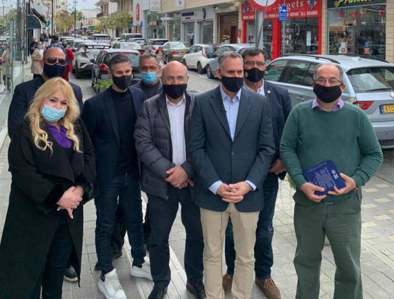 Ο Πρόεδρος του Δημοκρατικού Κόμματος, Νικόλας Παπαδόπουλος, συνοδευόμενος από τον βουλευτή του ΔΗΚΟ Λάρνακας, τοπικούς αξιωματούχους του κόμματος και υποψήφιους βουλευτές, πραγματοποίησε το Σάββατο (20.3.2021) περιοδεία στο κέντρο της Λάρνακας, διαπιστώνοντας ιδίοις όμμασι τα σοβαρά προβλήματα που αντιμετωπίζουν χιλιάδες μικρομεσαίες επιχειρήσεις και καταστήματα λόγω των ανεπαρκών μέτρων στήριξης τους.