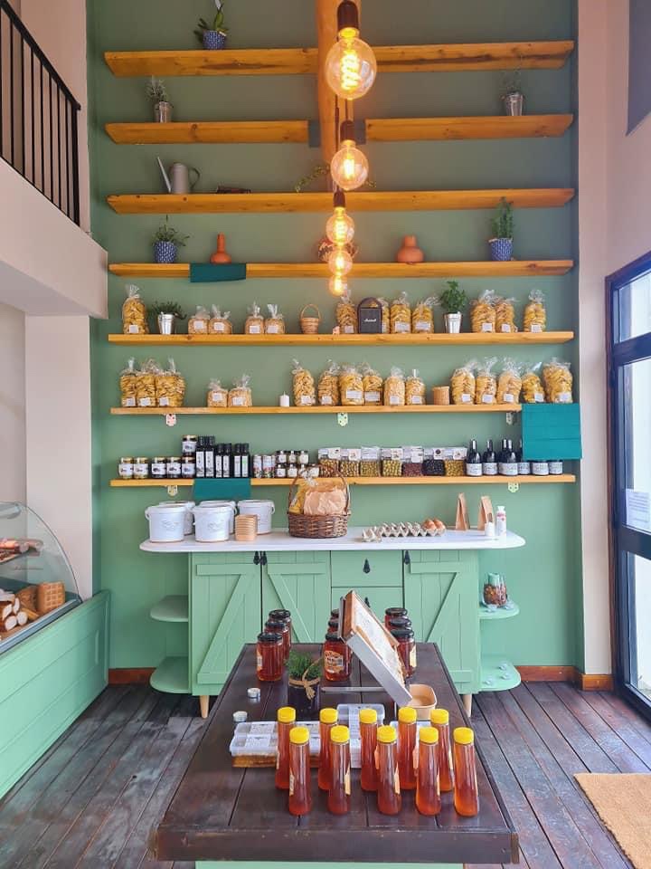 Ένα οικείος χώρος με παραδοσιακά και μη προϊόντα από αλλαντικά, τυριά, μέλι, και μεγάλη γκάμα από μακαρόνια.
