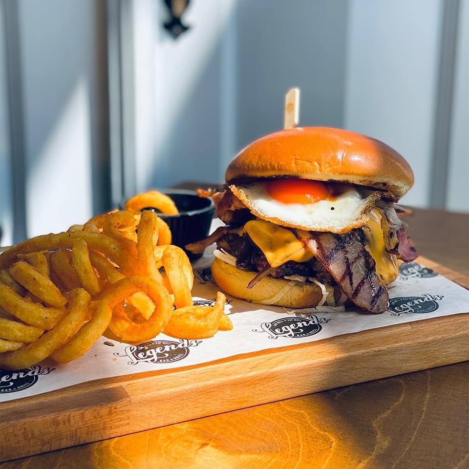 Όσο για την κουζίνα και το μενού του Legends, διαθέτει ποιότητα και μεγάλη ποικιλία. Μπορούμε να βρούμε από burgers που ικανοποιούν τόσο το μάτι όσο και την όρεξη, ζουμερά spare ribs, επιλογές από σουβλάκι, πάστες, μέχρι και τ’ αγαπημένα μας μεξικάνικα tacos, τις σαλάτες καθώς και μια πλειάδα άλλων πιάτων, που ο chef φτιάχνει ειδικά για το Legends. Για το πρωινό προτείνονται ανεπειφίλακτα οι επιλογές στη λίστα του Brunch που ο Σεφ ετοίμασε με μεγάλο μεράκι συνιδεία με τον premium καφέ. Δεν θα μπορούσαν φυσικά να παραλειφθούν οι veggie και vegetarian επιλογές που δεν στερούνται νοστιμάδας.