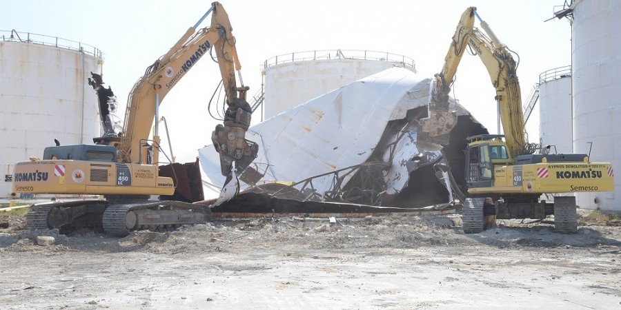 Κατεδαφίστηκαν οι δεξαμενές της εταιρείας Ελληνικά Πετρέλαια στη Λάρνακα (vid)