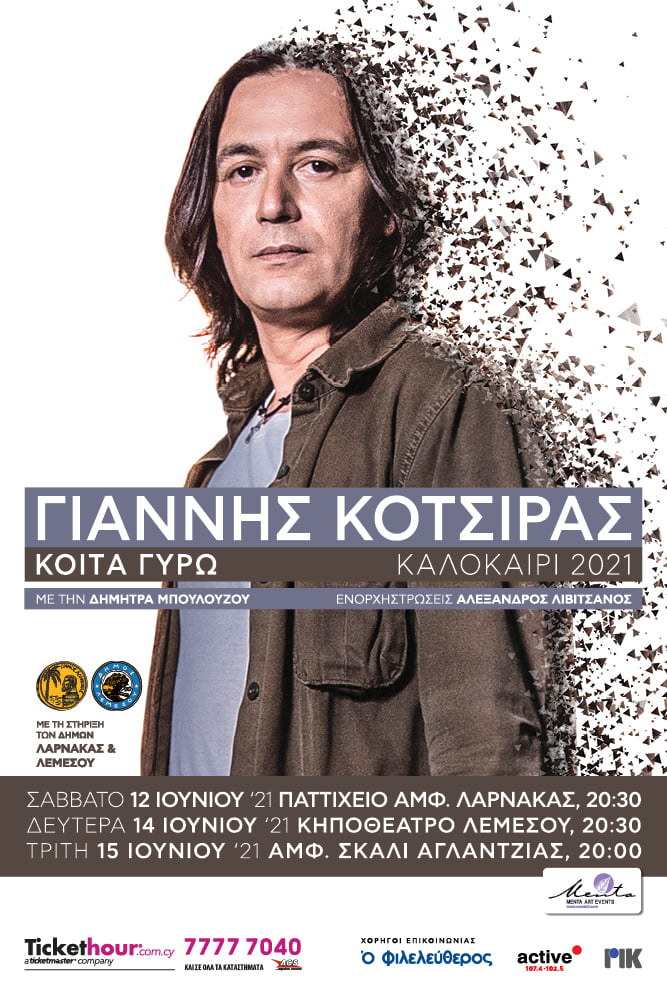 Ο Γιάννης Κότσιρας με αφορμή το καινούριο του άλμπουμ «Κοίτα Γύρω», ένα πολυσυλλεκτικό άλμπουμ με πάρα πολλούς φίλους, παλιούς και νεότερους, επιστρέφει στην Κύπρο.