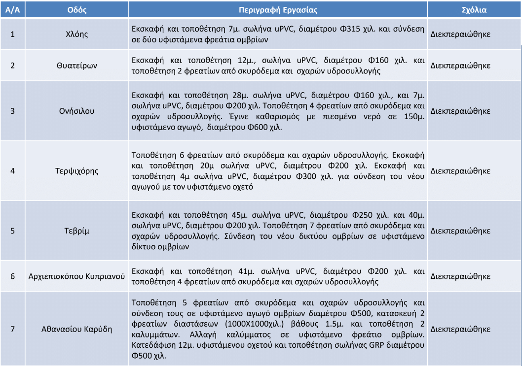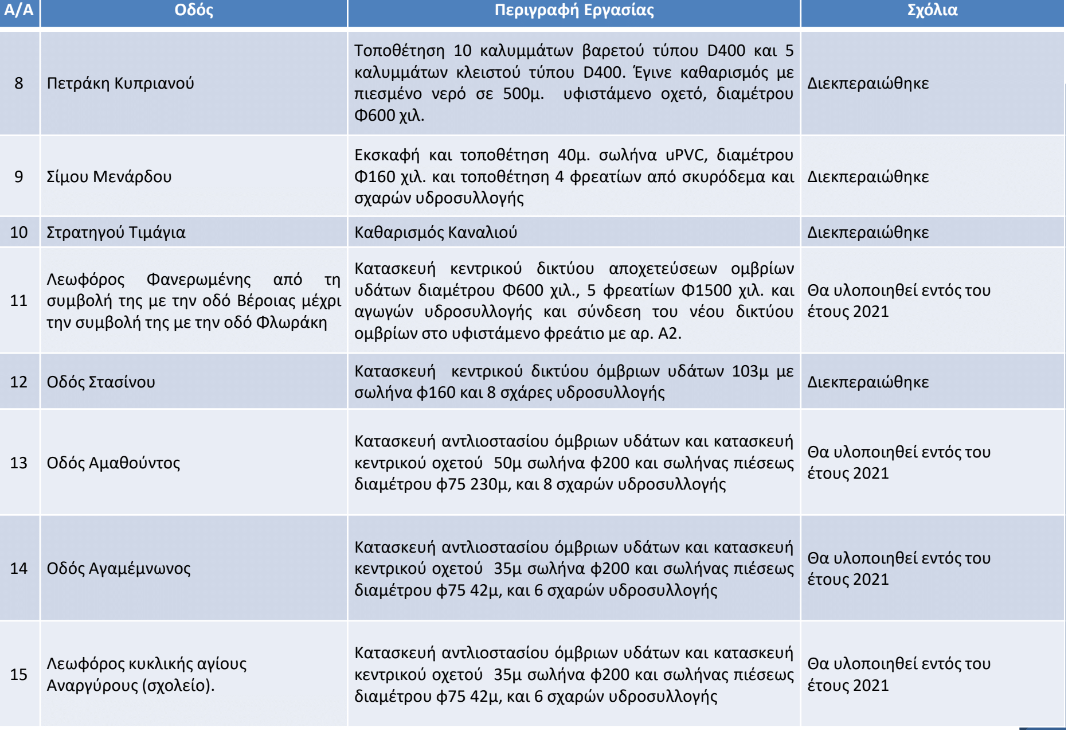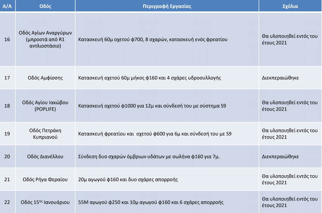 Κατασκευάστηκαν λοιπόν τα #Αντλιοστάσια #S8 στην περιοχή ανατολικά της Λεωφόρου Αλέξανδρου Παναγούλη και βόρεια της Λεωφόρου Σπύρου Κυπριανού και το αντλιοστάσιο #S9 στην περιοχή Σωτήρος. Το Έργο S9 περιλαμβάνει κατασκευαστικές εργασίες αγωγών όμβριων υδάτων στις οδούς Πετράκη Κυπριανού, Ευβοίας, Προδρόμου, Πατρών, Πριάμου, Ελευσίνος, Αναγεννήσεως, Πλαταιών, Πατρικίου Λουμούμπα, Αρχιεπισκόπου Κυρίλλου ΙΙ, Λεοντίου Μαχαιρά, Αγίου Δημητρίου και Αγίου Ιωάννου Χρυσοστόμου.