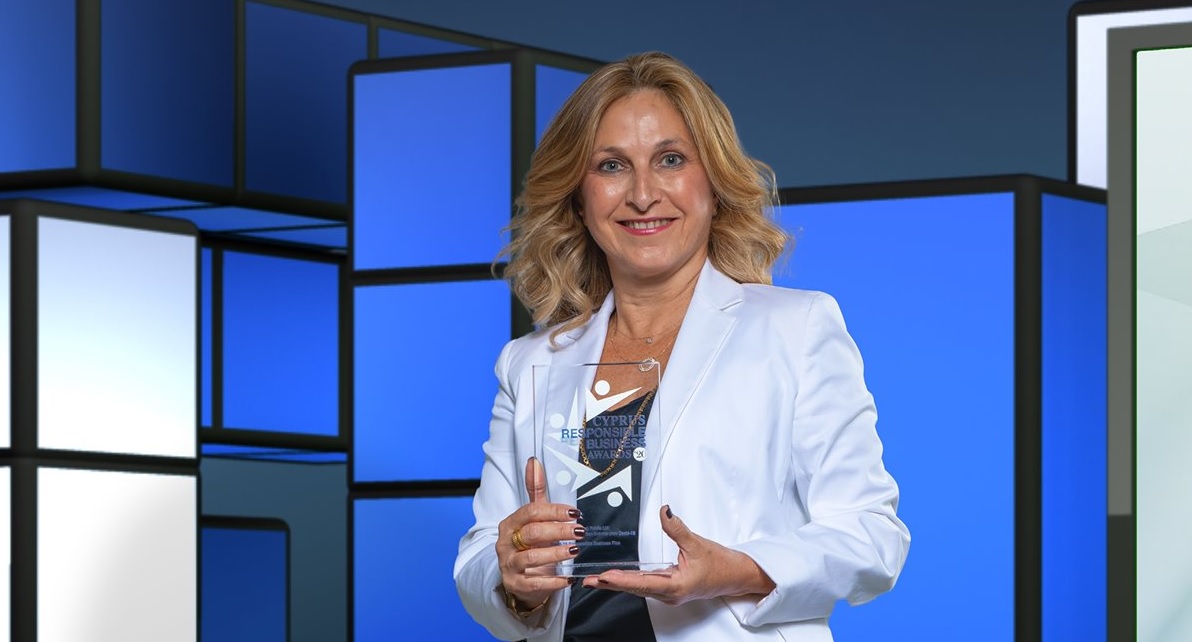 Μπορεί να είναι εικόνα 1 άτομο, στέκεται και κείμενο που λέει "CYPRUS RESPONSIBLI BUSINESS AWARDS"