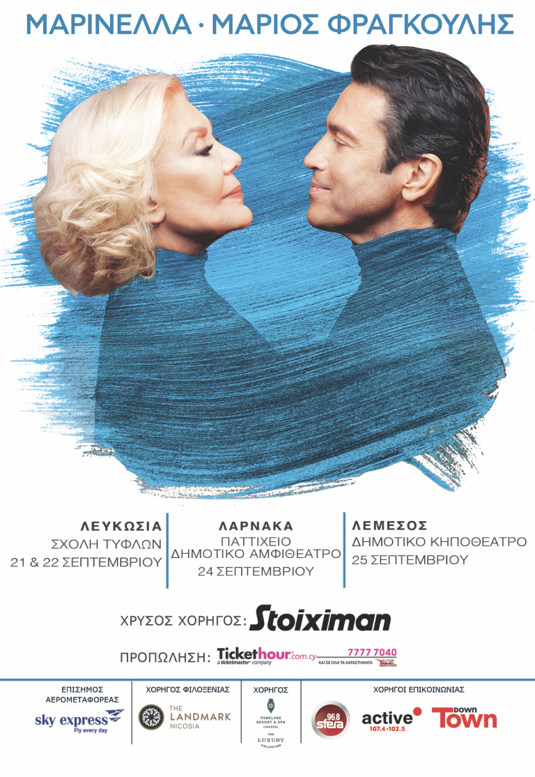 Μετά τις δύο sold out παραστάσεις στο Ηρώδειο και στο Θέατρο Γης η Κύπρος ΥΠΟΔΕΧΕΤΑΙ την ΜΑΡΙΝΕΛΛΑ  και τον ΜΑΡΙΟ ΦΡΑΓΚΟΥΛΗ !!