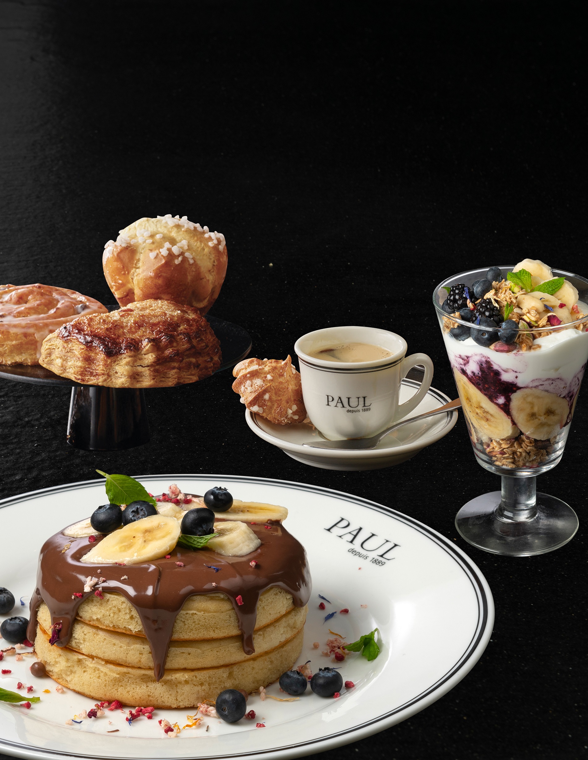 ​Στο μενού του PAUL θα βρείτε ένα από τα πιο πλούσια και γευστικά προγεύματα σε ολόκληρο τον κόσμο, φρέσκες σαλάτες με σολομό, γαρίδες και τυρί μπουράτα, γευστικότατα μπέργκερ και ζυμαρικά, καθώς και πολλές επιλογές από παραδοσιακά γαλλικά πιάτα όπως η γαλλική κρεμμυδόσουπα σερβιρισμένη σε ψωμί PAUL, quiche Lorraine, croque-monsieur, coq a vin και μοσχαρίσιο φιλέτο με μανιτάρια, παρμεζάνα και τυρί Εμμεντάλ.