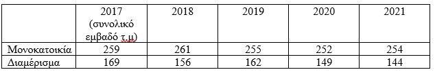 Με βάση και την πληροφόρηση που δόθηκε από την Στατιστική Υπηρεσία γίνεται παραδοχή ότι όταν γίνεται αναφορά στα στοιχεία αυτά σε μέγεθος τ.μ υπονοείται συνολικό εμβαδό[1].