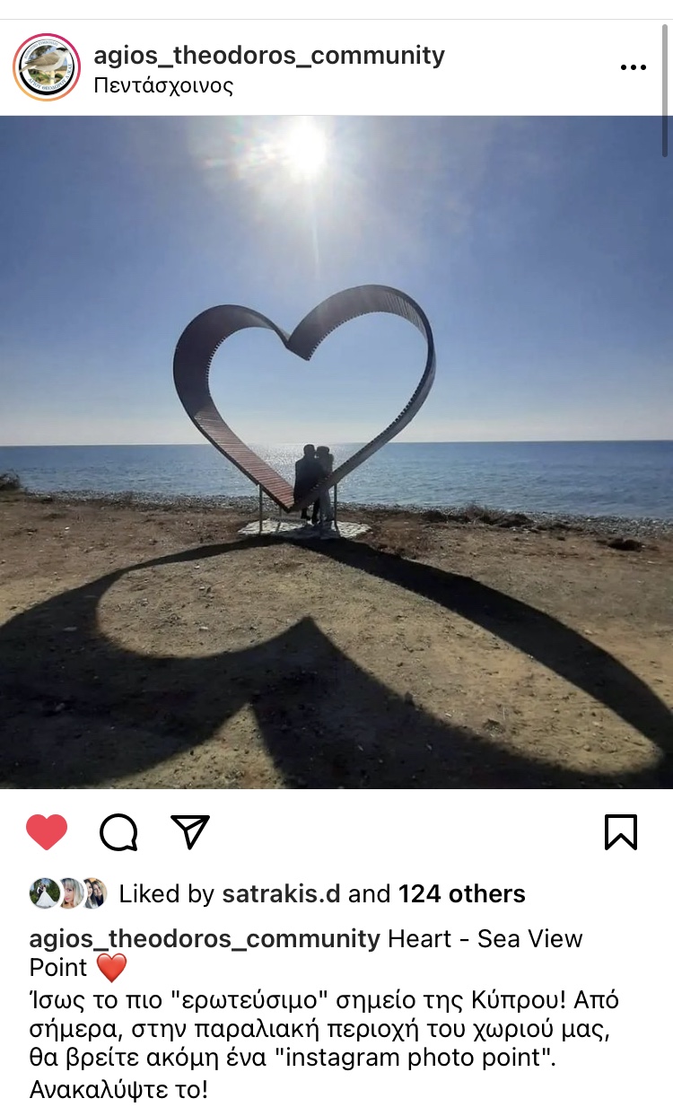 Μετά το εντυπωσιακό Σημείο Θέας “Στεφάνι”, την εμφάνιση του έκανε τη Δευτέρα το “Heart Sea View Point” στην παραλία της κοινότητας το οποίο δεν άργησε να γίνει viral στα ΜΚΔ αφού χθες, ημέρα του Αγίου Βαλεντίνου πολλοί έτρεξαν να φωτογραφηθούν και να φωτογραφήσουν την όμορφη κατασκευή.