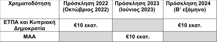 Ως εκ τούτου το συνολικό ποσό που θα διατεθεί για τις ανάγκες του Σχεδίου είναι €30 εκατ. και οι προσκλήσεις προγραμματίζονται ως ακολούθως: