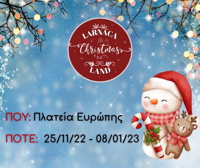 Από τις 25 Νοεμβρίου μέχρι τις 8 Ιανουρίου 2023, το Larnaca Christmas Land θα προσφέρει στιγμές γιορτινής διάθεσης και άφθονου παιχνιδιού για όλη την οικογένεια!