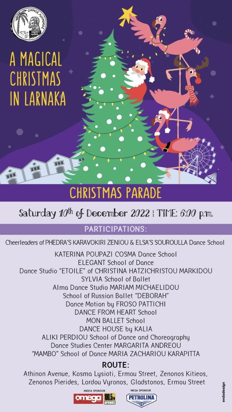 Ο Δήμος Λάρνακας διοργανώνει και φέτος Χριστουγεννιάτικη Παρέλαση το Σάββατο 10 Δεκεμβρίου στις 18:00 στο εμπορικό κέντρο της πόλης.