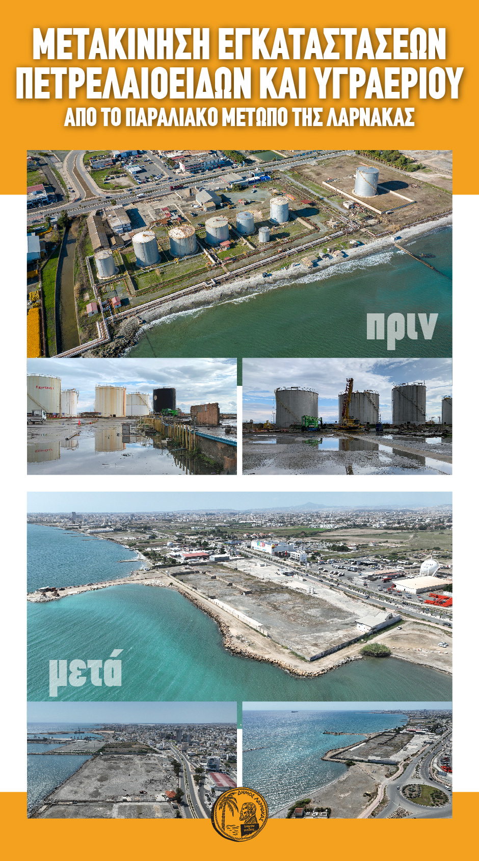 Η διαδικασία αυτή καθώς επίσης και η ολοκλήρωση της αποξήλωσης όλων των εγκαταστάσεων από το παραλιακό μέτωπο της Λάρνακας αναμένεται να τελειώσει οριστικά την Άνοιξη του 2023.