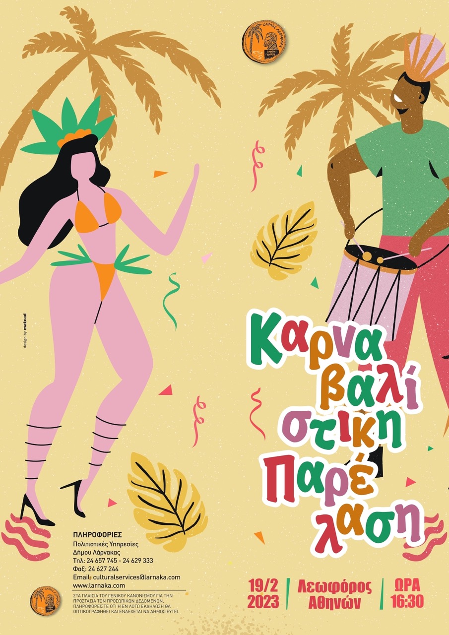 Την Κυριακή, 19 Φεβρουαρίου 2023, στις 4.30 μ.μ.,  πραγματοποιείται η Καρναβαλίστικη Παρέλαση ομάδων και αρμάτων κατά μήκος της Λεωφόρου Αθηνών (Φοινικούδες). Τραγούδια, χοροί και μεταμφιέσεις θα αποτελέσουν αναπόσπαστο μέρος της Παρέλασης.