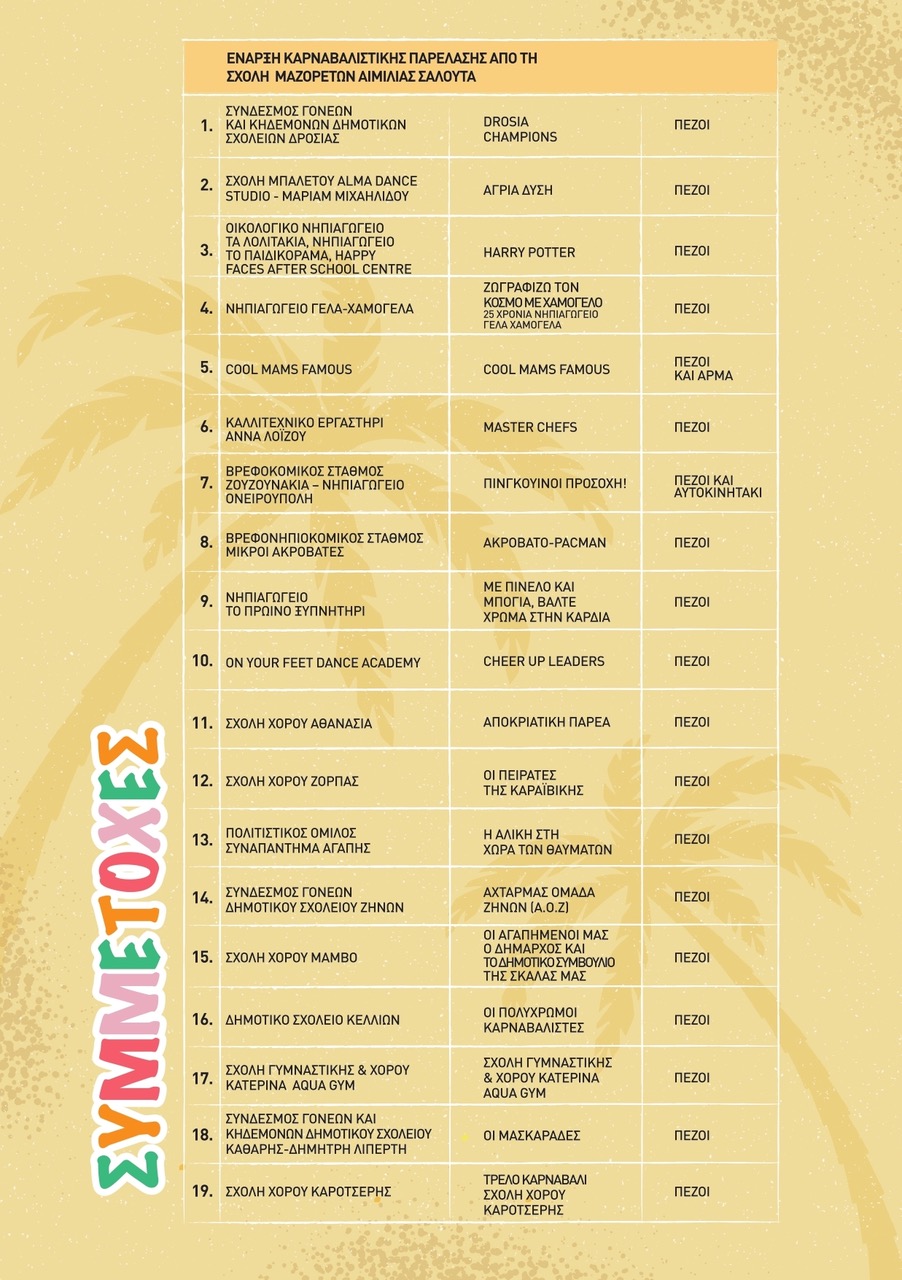 City of Larnaca > Blog > Ατζέντα > Events > Με 19 συμμετοχές οργανωμένων συνόλων η καρναβαλίστικη παρέλαση της Κυριακής στις Φοινικούδες
