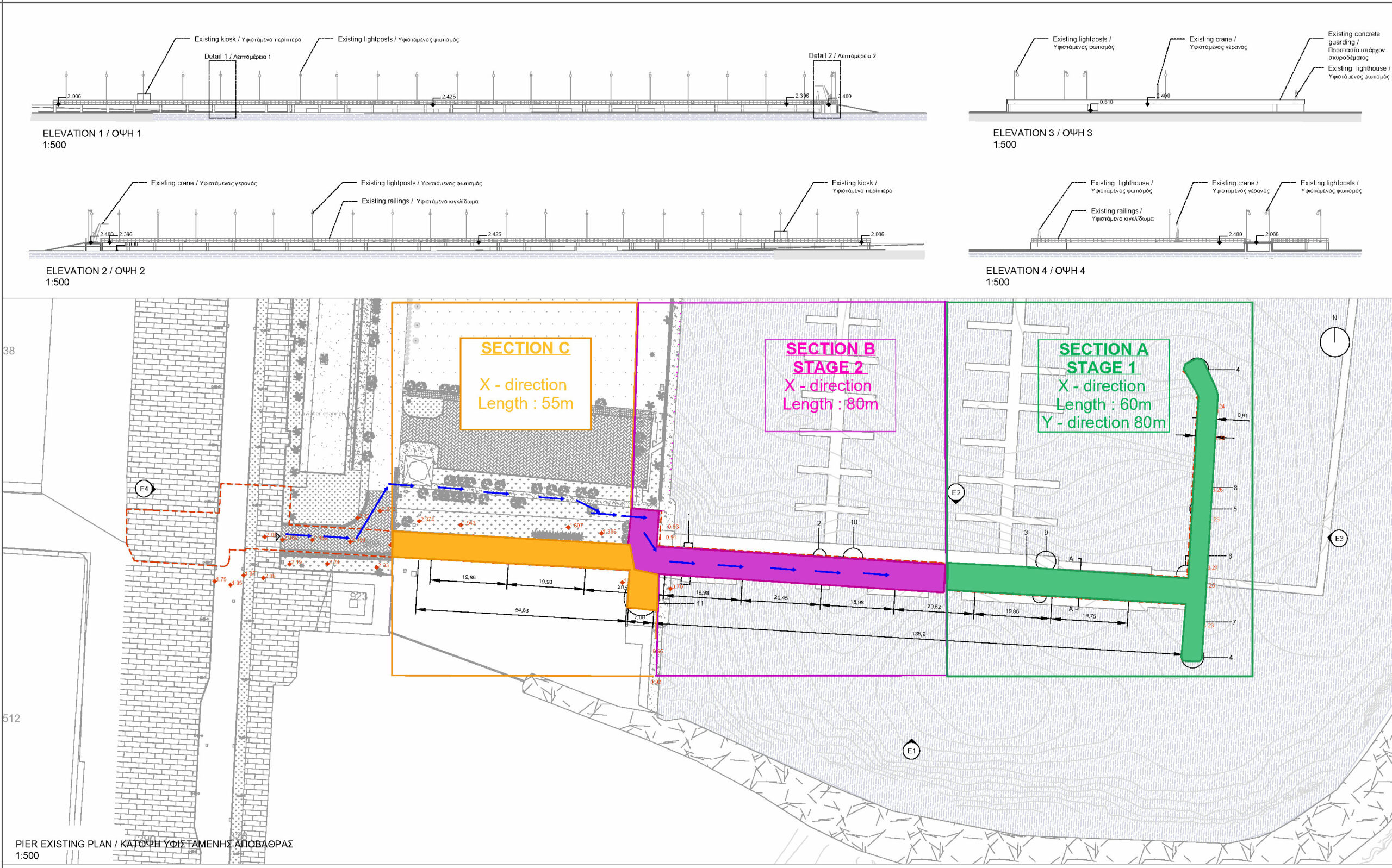 - Στη δημιουργία διαδρόμου πλησίον της ξύλινης αποβάθρας, από όπου μπορούν να διέρχονται οι ακτοπλόοι και οι πελάτες τους με ασφάλεια και διασφάλισης διαρκούς πρόσβασης των επιβατών στα κρουαζιερόπλοια κατά της τρεις φάσεις της κατασκευαστικής περιόδου. (επισυναπτόμενη φωτογραφία)