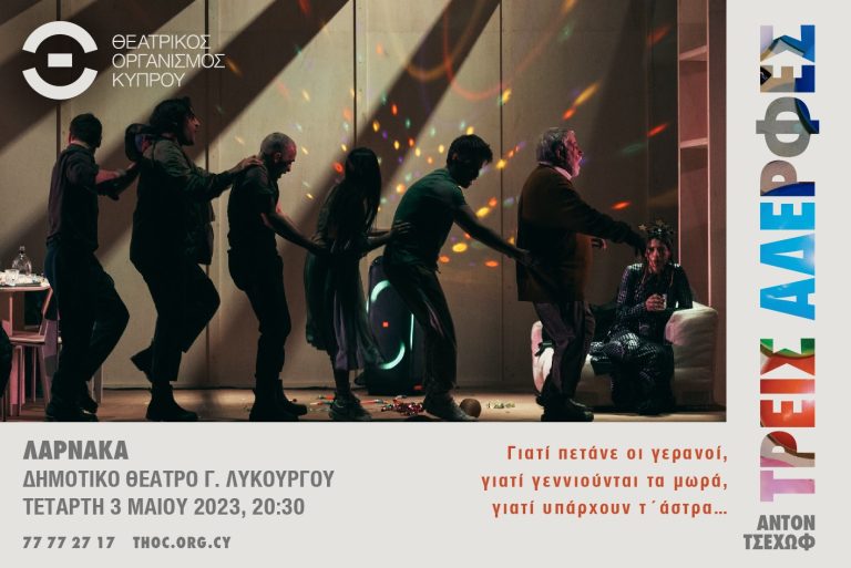 Η παράσταση του έργου του Άντον Τσέχωφ Τρεις αδερφές, σε σκηνοθεσία Αθηνάς Κάσιου, μετά την μεγάλη της επιτυχία στη Λευκωσία ξεκινά την περιοδεία της στην Λάρνακα την Τετάρτη 3 Μαḯου 2023, στις 20:30 στο Δημοτικό Θέατρο Γ. Λυκούργου.