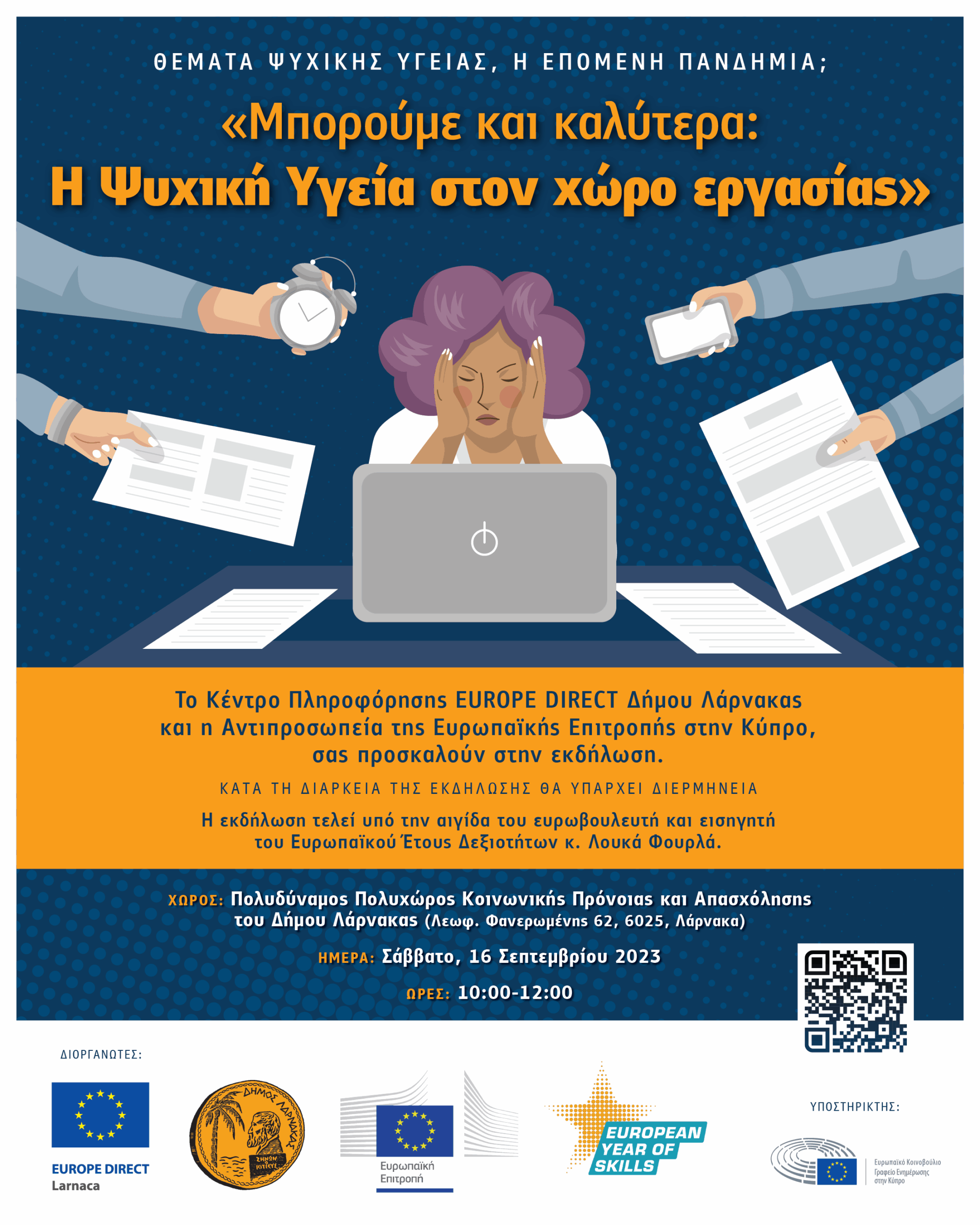Το Κέντρο Πληροφόρησης EUROPE DIRECT Δήμου Λάρνακας και η Αντιπροσωπεία της Ευρωπαϊκής Επιτροπής στην Κύπρο, σας προσκαλούν, το Σάββατο 16 Σεπτεμβρίου 2023, στην εκδήλωση