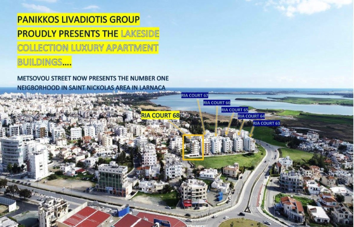 Πρόκειται για τα έργα «RΙΑ COURT 67&68» τα οποία θα βρίσκονται σε μια προνομιούχα περιοχή της Λάρνακας, την περιοχή Αγίου Γεωργίου Μακρή, οδός Μετσόβου 9&11,τα οποία θα αποτελούνται από είκοσι πολυτελή διαμερίσματα των δύο και τριών υπνοδωματίων με άνετους χώρους στάθμευσης και ξεχωριστές αποθήκες.